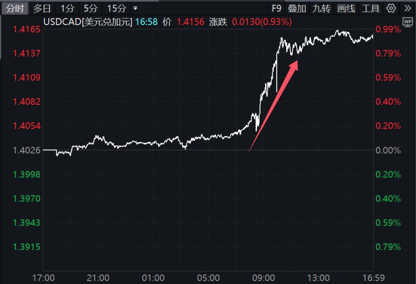 此次加元跳水与加拿大11月失业率上升密切相关。当天公布的数据显示,加拿大11月失业率攀升至6.8%,为三年来最高水平。这一数据加剧了市场对加拿大央行即将大幅降息的预期,交易员纷纷加大对降息50个基点的押注。