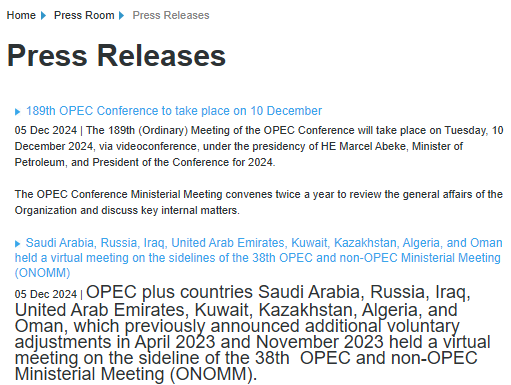 当地时间周四(12月5日),维也纳总部石油输出国组织(欧佩克)在官方网站上宣布,欧佩克及其盟友决定将现有的自愿减产措施再度延长。