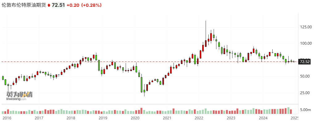 布伦特原油价格月线图