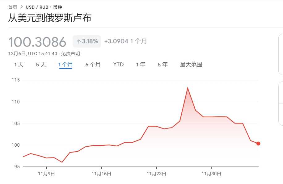 俄罗斯总统普京近日签署了一项联邦总统令,为欧洲天然气买家提供了新的支付渠道,此举显著提振了俄罗斯卢布。周五,卢布兑美元汇率成功突破100卢布大关,达到1美元兑换99.5卢布的水平,银行间场外交易数据显示,卢布兑美元一度上涨1.5%,而在莫斯科证券交易所,卢布兑人民币汇率更是大涨2.4%。