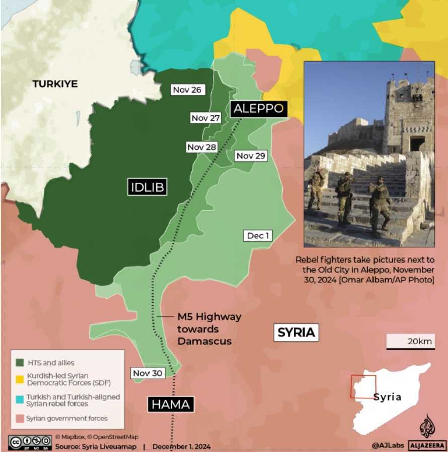 此次挑起攻击的叙利亚反对派和极端组织武装构成复杂,由“解放沙姆阵线”(HTS)领头,该组织被多国认定为恐怖组织。此次攻势在以色列与黎巴嫩真主党停火协议生效后爆发,反对派武装在短短几天内就攻入了叙利亚第二大城市阿勒颇,并快速南下拿下中部城市哈马,周六全力进攻叙利亚第三大城市霍姆斯,被视为守卫大马士革的最后一条重要防线。