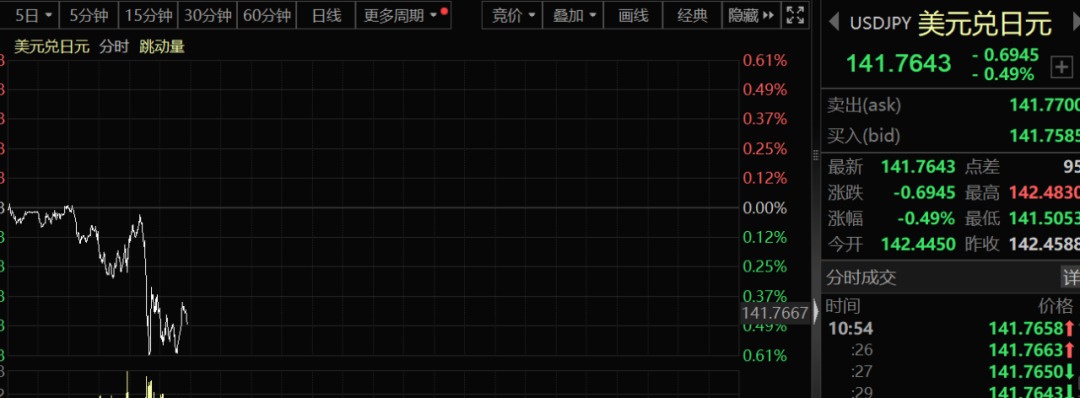 早盘,美元兑日元汇率跌破141.68的前低,创下自1月2日以来的新低。与此同时,泰铢、韩元、印尼卢比等货币也显著上涨,人民币同样跟随上扬。这一外汇市场的波动对股市产生了影响,日本股市早盘走势明显疲弱,香港市场也同样缺乏动力。