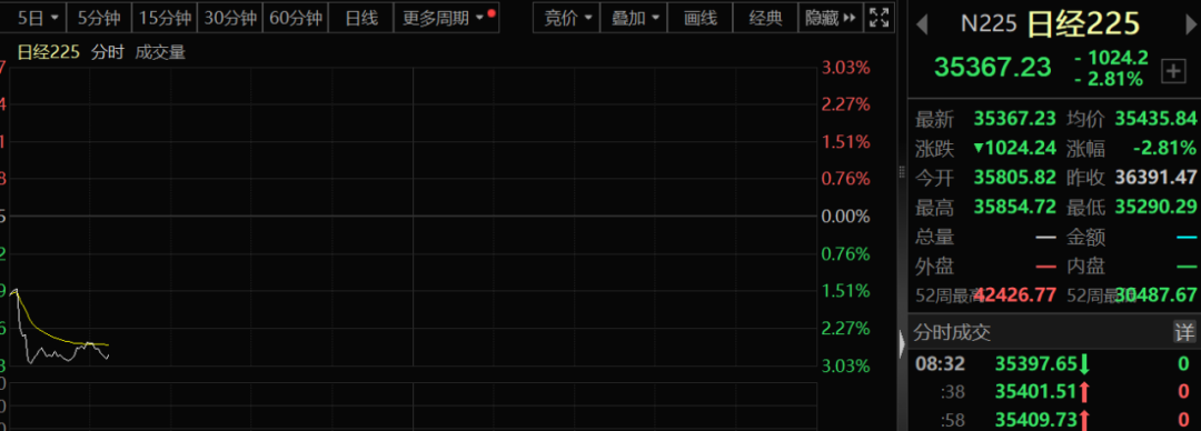 全球市场波动再度加剧!今日早盘,日经225指数跌幅一度突破3%,丰田汽车、三菱日联金融等蓝筹股更是跌超4%。韩国KOSPI指数紧随其后,一度跌超2%。尽管随后跌幅有所收窄,但市场恐慌情绪依旧弥漫。值得注意的是,中东股市在周日率先开盘后,同样表现惨淡。埃及股指收跌超2.4%,沙特股指也创下近一个月最大单日跌幅。