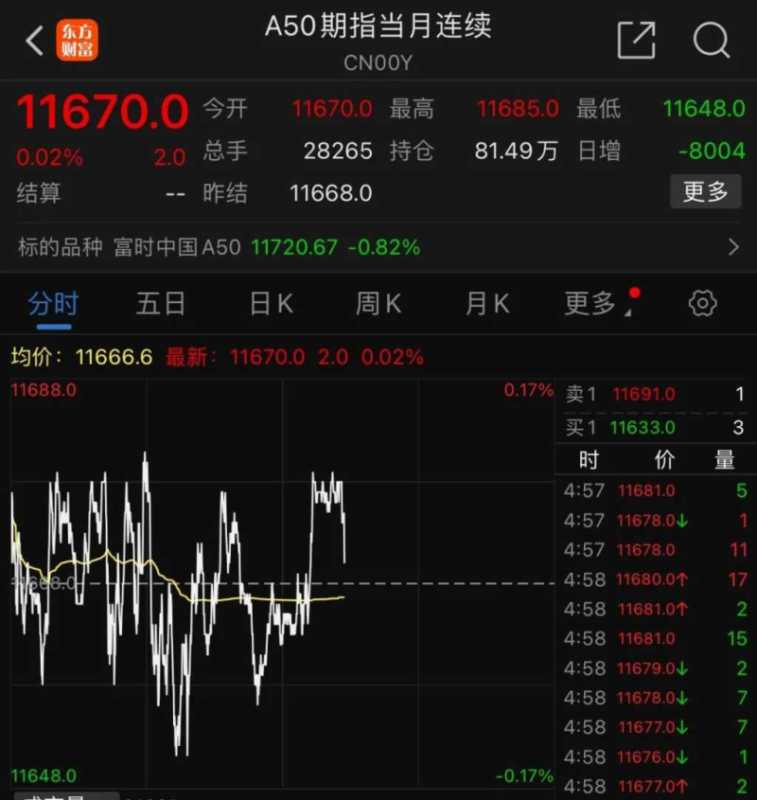 然而,在全球股市一片惨淡中,中国期指却表现出难得的坚挺。A50期货指数微幅上涨,成为全球市场的亮点。
