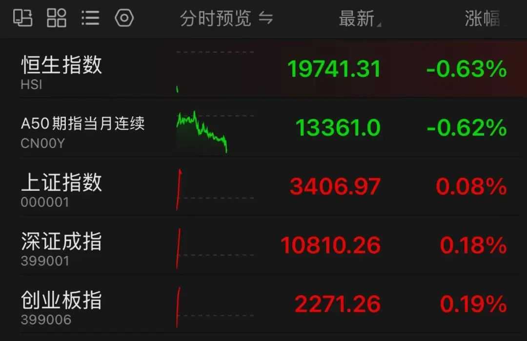 尽管亚太股市整体表现不佳,但A股市场在开盘后迅速反弹,上证指数、深证成指和创业板指均翻红。香港股市同样低开,恒指和恒生科技指数分别低开0.67%和0.8%,小鹏汽车股价下跌超过2%。
