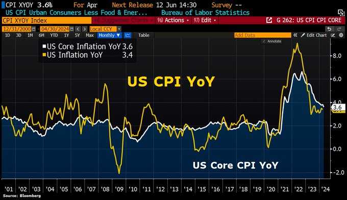美国劳工部周三的数据显示,4月份消费者价格指数(CPI)同比上涨3.4%,剔除波动较大的食品和能源项目后的核心CPI同比攀升3.6%,为2021年4月以来的最低增幅。这两项数据均符合预期。而在环比方面,美国4月CPI月率增长0.3%,略低于0.4%的预期和前值,这是6个月来美国CPI环比涨幅首次放缓。