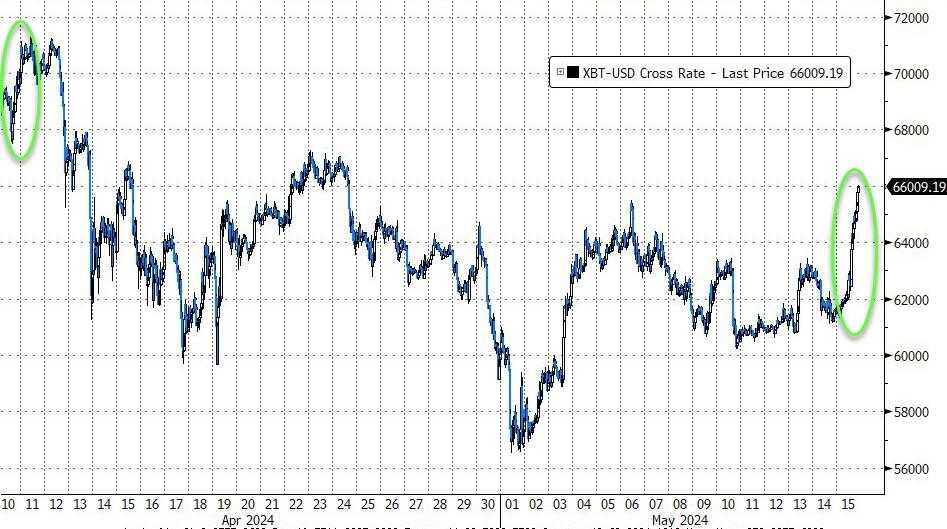 周三市场上最为失意的大类资产是美元。美元指数跌至一个月新低,美元兑日元的跌幅居前。美元的下跌推动了黄金、比特币等资产进一步走高。比特币价格飙升至66000美元上方,金价则升至近一个月最高。