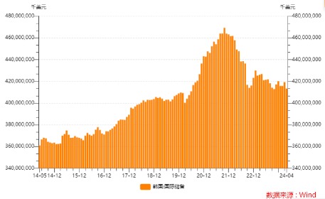 韩国央行周二发布的数据显示,4月份韩国外汇储备因官方干预外汇市场抑制韩元贬值而出现19个月以来的最大降幅。截至4月底,外汇储备规模为4132.6亿美元,较上月减少59.9亿美元,降幅为自2022年9月以来最大。