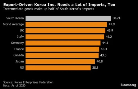 韩国中小企业联合会表示,出口商也是进口商,能源和原材料价格上涨尤其明显。在与其他亚洲国家竞争的市场上,韩元疲软带来的竞争优势易被削弱。数据显示,韩元疲软并未推动韩国出口增长。