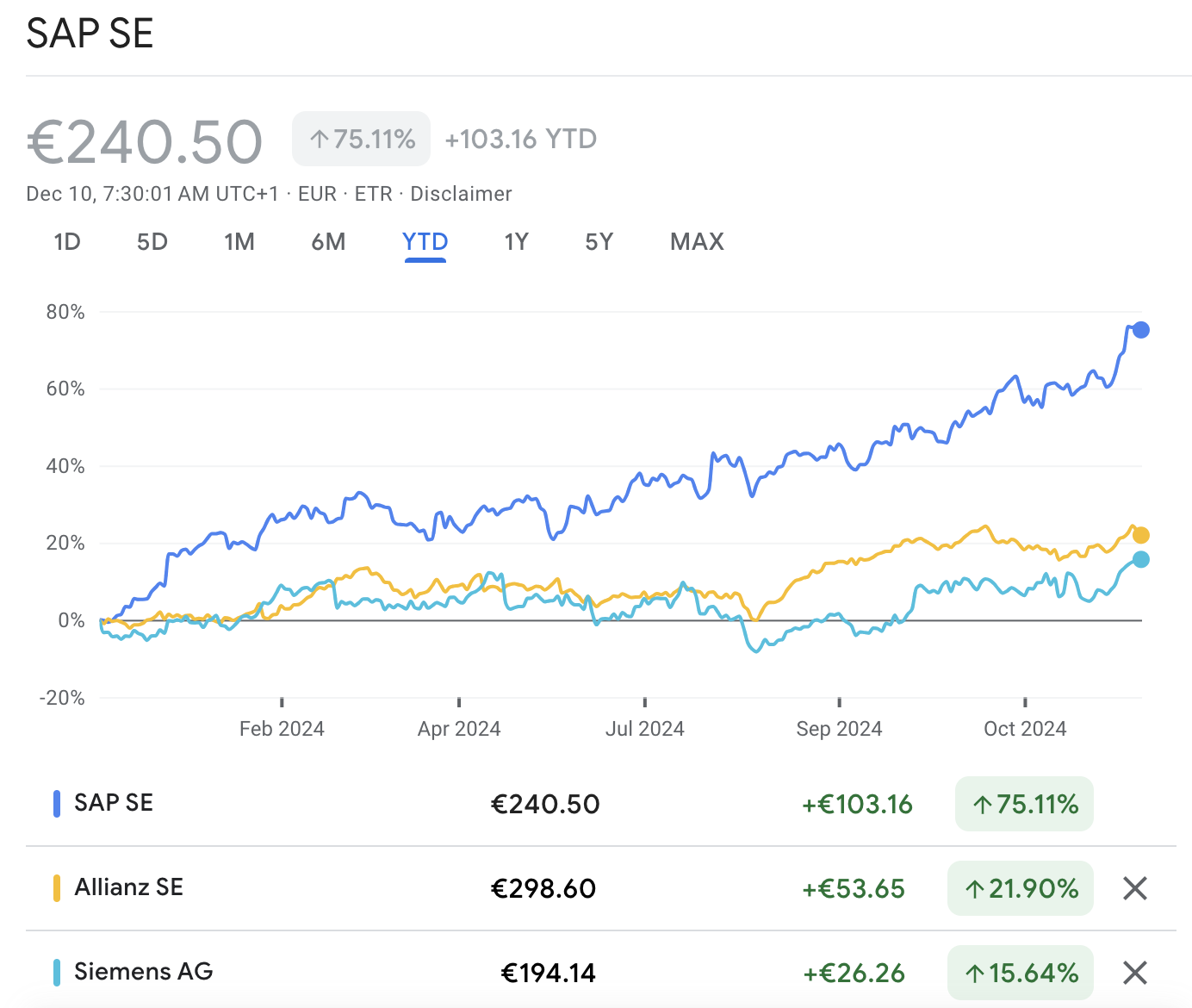 近期,思爱普的走势与德国DAX指数同步上行,近一个月累计涨幅达到8.53%,今年迄今涨幅更是高达75.11%,为DAX指数的上涨贡献了重要力量。作为德国软件巨头,思爱普今年以来致力于将AI全面融入云解决方案,其生成式AI智能副驾Joule正在逐步扩展到整个产品组合,预计将为SAP的3亿用户带来更高效的工作体验。