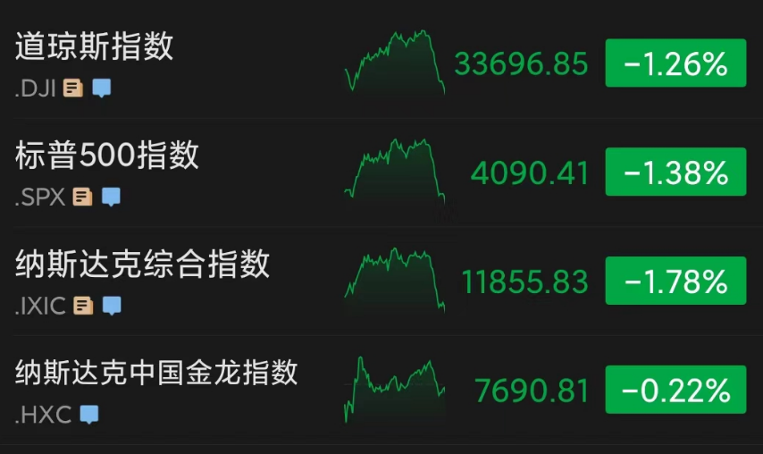股市方面,同日美股三大指数收盘显著下跌。道琼斯工业平均指数跌1.26%,标准普尔500指数跌1.38%,纳斯达克综合指数跌1.78%。大型科技股普遍走低,特斯拉跌幅超过5%,英伟达下跌逾3%。思科因业绩向好,股价大涨5.24%,领涨道指成分股。