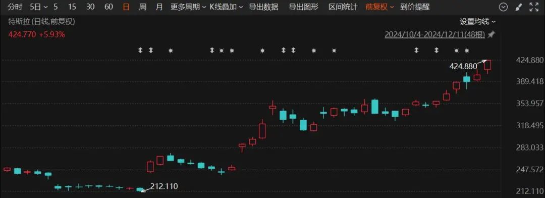 明星科技股方面,特斯拉、谷歌、亚马逊、Meta和奈飞等巨头股价纷纷刷新历史新高。特斯拉和谷歌股价涨幅接近6%,而亚马逊、Meta和奈飞涨幅超过2%。