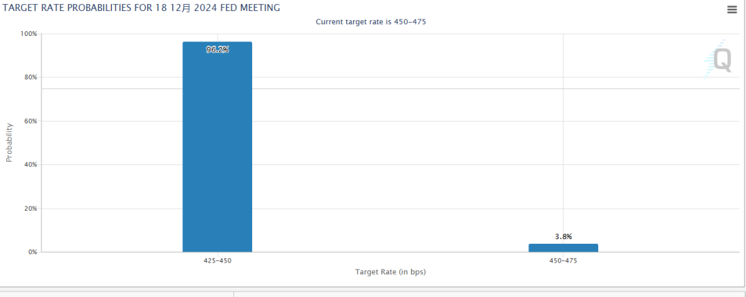 尽管价格压力已从疫情高峰有所缓解,但近期趋于平稳,促使多位央行官员呼吁未来采取更渐进的降息方式。CPI数据公布后,交易员对美联储12月降息的押注大幅增加,市场预计降息可能性由86.1%升至96.4%,并预计未来12个月将有超过80个基点的降息。
