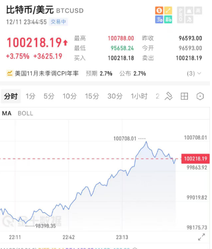 此外,比特币再次站上10万美元关口,日内涨幅超过3%。而中国资产方面,富时中国A50期货指数则小幅下跌。