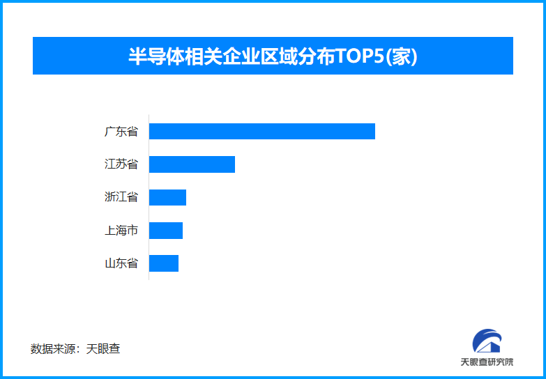 据天眼查专业版数据显示,当前我国半导体相关企业数量已高达33.2万余家,其中76.8%的企业成立于近五年内。今年以来,我国新增半导体相关企业已超过6.8万家。从地域分布来看,广东省以11.7万余家半导体相关企业高居榜首,江苏省则以4.4万余家紧随其后,浙江、上海、山东三省的企业数量也均超过1万家。此外,数据显示,涉及司法案件的半导体相关企业有8000余家,占企业总数的2.5%,这也在一定程度上反映了行业发展的复杂性和挑战。