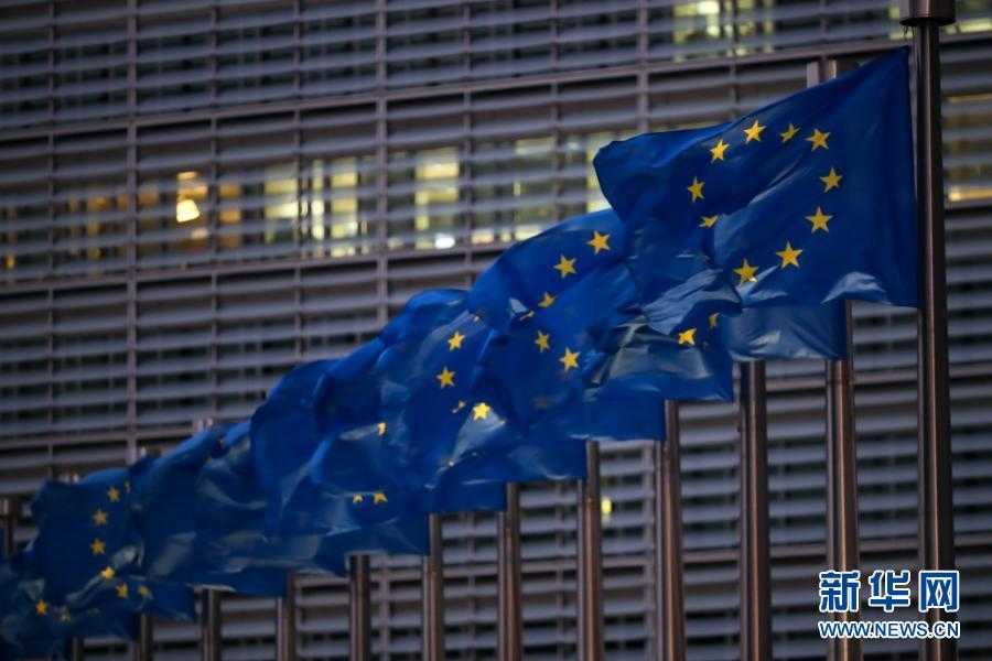 12月24日在比利时布鲁塞尔拍摄的欧盟委员会总部大楼前的欧盟旗帜。 新华社记者张铖摄