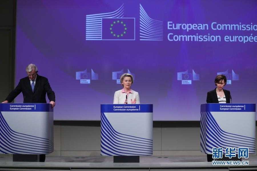 12月24日,在比利时布鲁塞尔的欧盟委员会总部,欧盟负责与英国谈判的首席代表米歇尔·巴尼耶(左)与欧盟委员会主席冯德莱恩(中)出席新闻发布会。 新华社记者郑焕松摄