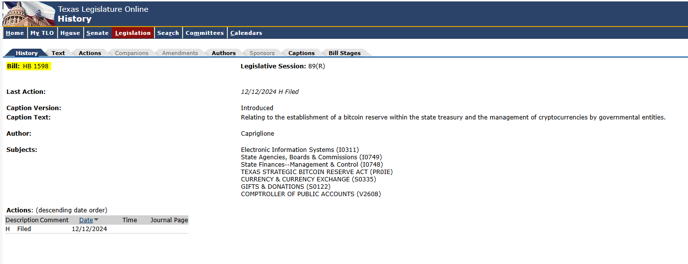 美国得克萨斯州共和党州议员Giovanni Capriglione于当日提出了一项立法建议,旨在建立战略性比特币储备。该法案将允许该州以比特币形式收取税收、费用和捐款,并至少持有五年。Giovanni认为这是一种抗通胀的对冲手段。然而,该提案并未详细说明购买比特币的具体计划。