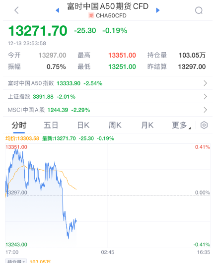 中国资产方面,中概股指数下跌约1.77%,富时中国A50期货指数也小幅走低。