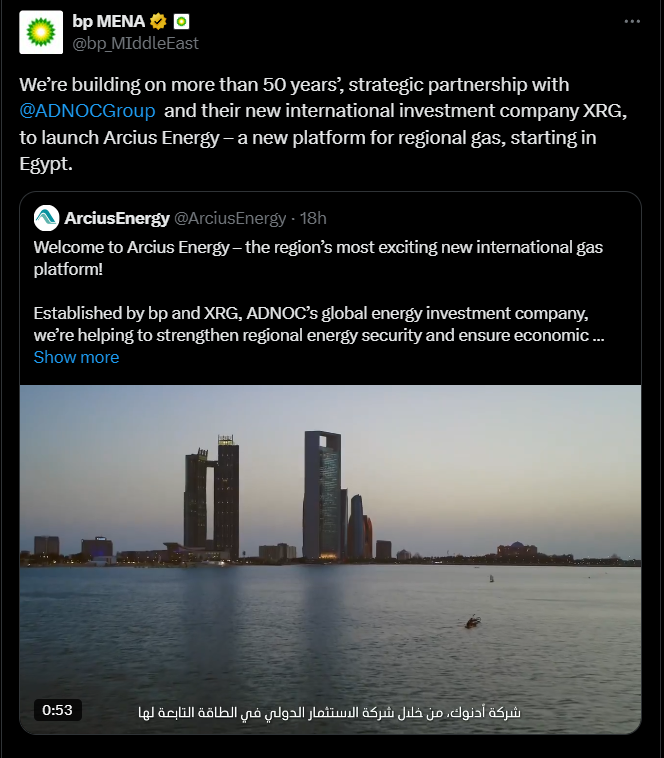 ADNOC与BP合资成立Arcius Energy,推动国际天然气平台建设