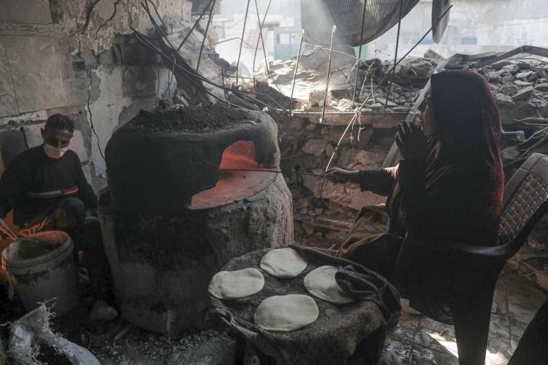 在加沙地带中部城市代尔拜拉赫,当地居民在被毁房屋中烤制大饼,生活备受影响。以军声称,空袭目标是巴勒斯坦伊斯兰抵抗运动(哈马斯)和巴勒斯坦伊斯兰圣战组织(杰哈德)武装人员,但半岛电视台对此表示谴责,并暂未回应以军说法。