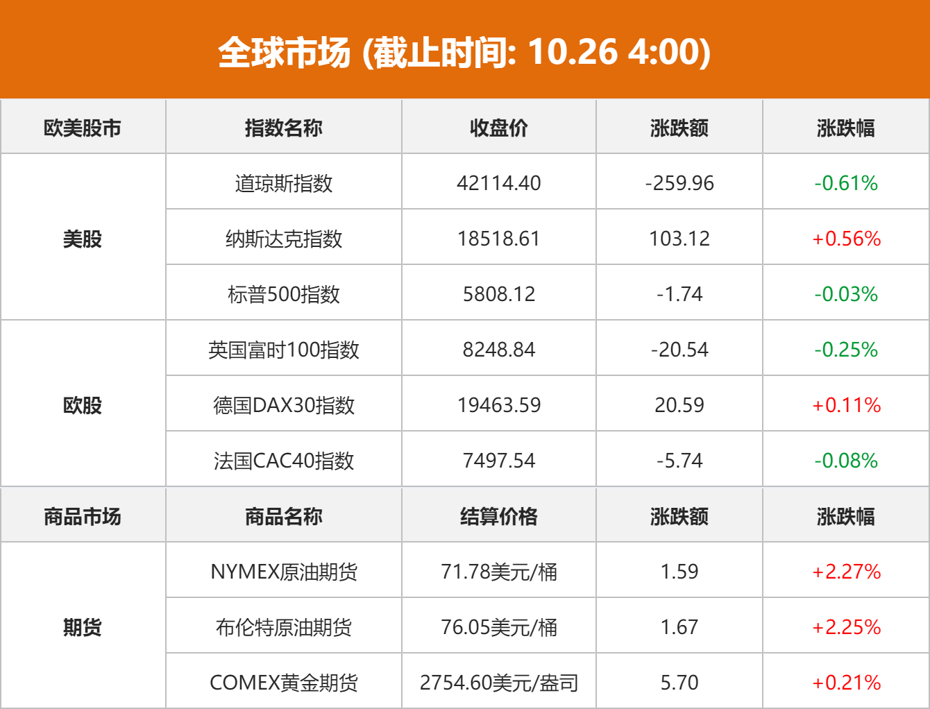 美股涨跌不一,欧股分化,商品市场油价金价齐上涨