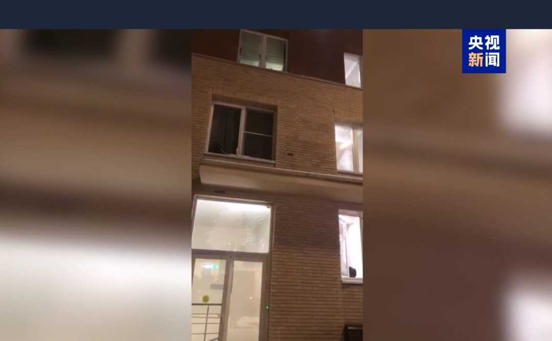 事故现场的视频和照片显示,两名男子倒在人行道上,身上布满爆炸碎片,其中一名男子周围有血迹。公寓大楼上窗户破碎,砖墙受损严重。