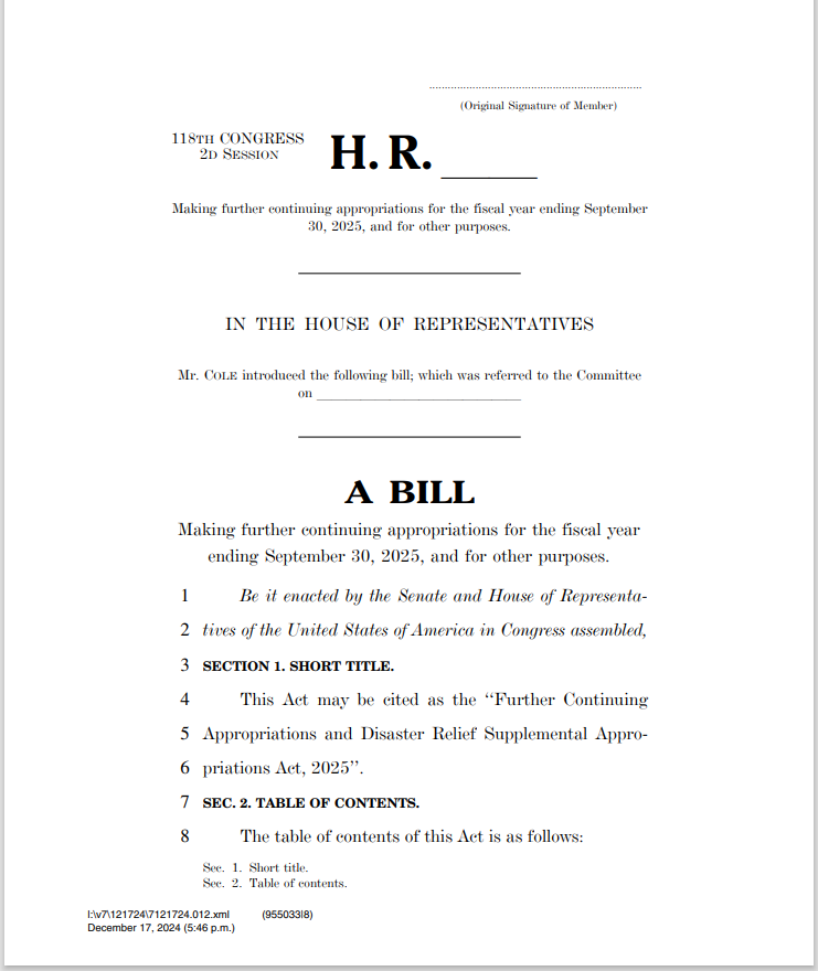 当地时间周二,随着联邦政府“停摆”最后期限的日益临近,美国国会领导层紧急公布了一项临时拨款法案的文本内容。该法案旨在将联邦政府的运营资金延长至2025年3月,同时包含了超过一千亿美元的紧急救灾和农业援助资金。