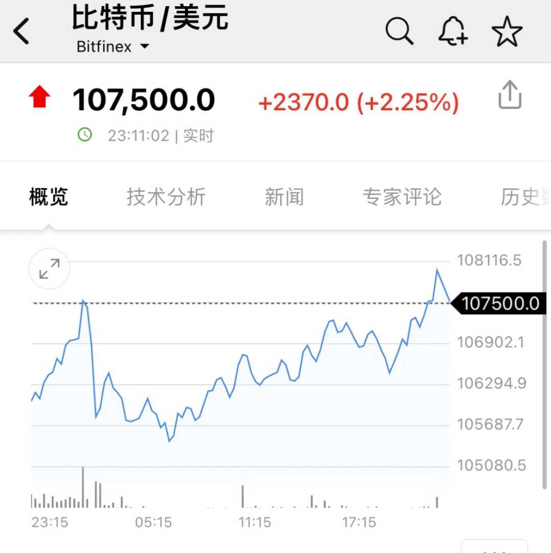 数字货币市场同样传来好消息,比特币价格向上突破108000美元,再次刷新记录,24小时内涨幅超过2%。