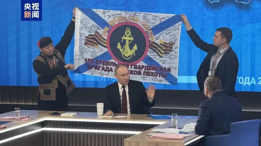 在军事方面,普京表示,俄军正在逐步实现特别军事行动的主要目标,在接触线全线每天都在向前推进。他向记者展示了俄太平洋舰队155陆战旅的战旗,并强调库尔斯克的战斗正在持续,俄军一定会将乌军击退。此外,普京还驳斥了西方专家关于轻易击落“榛树”导弹的说法,并指出“榛树”导弹是俄罗斯专家基于最新研究的成果。