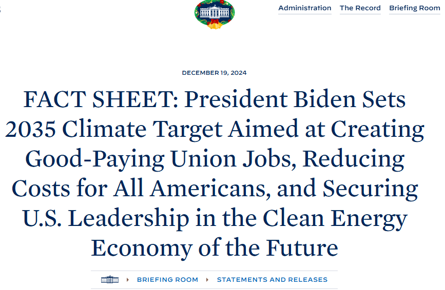 拜登政府公布最新美国减排目标,承诺2035年减排60%以上,但业内预计特朗普上台后将推翻该计划。各国需在2025年2月前提交新的气候行动方案,但现有目标与具体实施存在巨大差距。