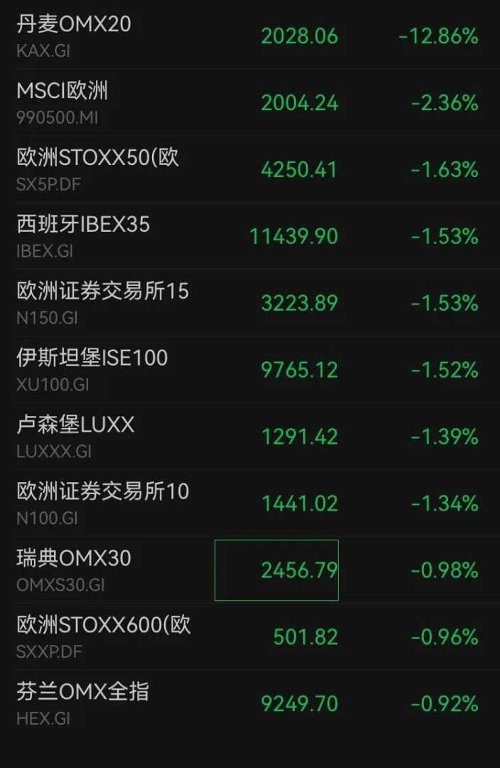 12月20日,欧洲股市普遍遭遇下滑,法国、德国、英国等主要股指跌幅一度超过1%,其中丹麦OMX20指数更是大幅下跌12.86%。