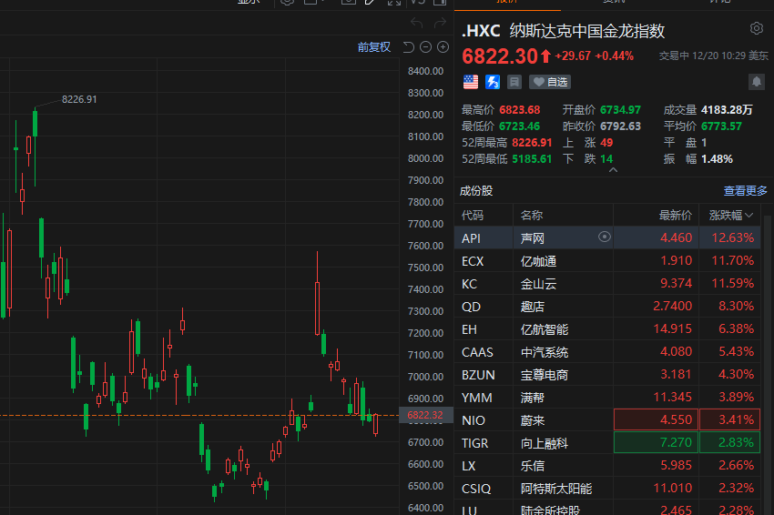 中概股方面,纳斯达克中国金龙指数转涨,多只中概股也集体上扬,金山云涨幅超过11%,声网涨幅超过12%,蔚来涨幅超过3%。同时,A50指数期货也呈现上涨态势。