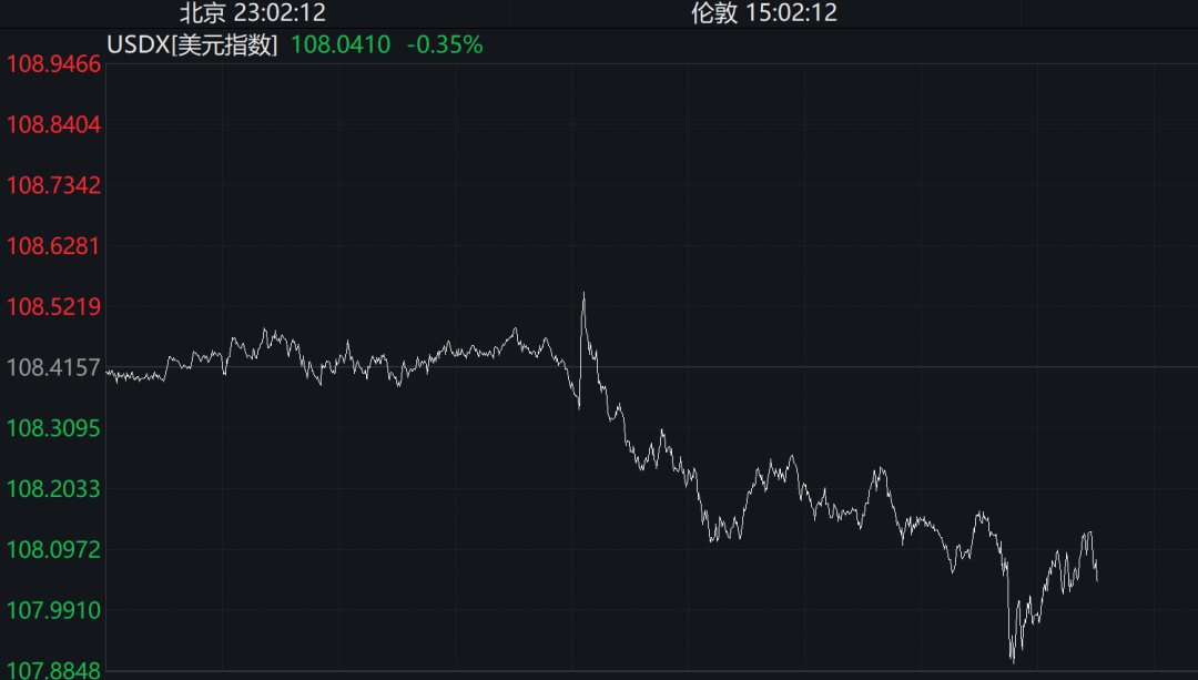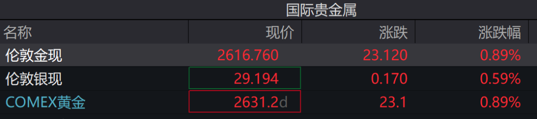 此外,美元指数短线走低,日内跌幅达到0.35%;现货黄金则短线拉升,报2616.76美元/盎司。