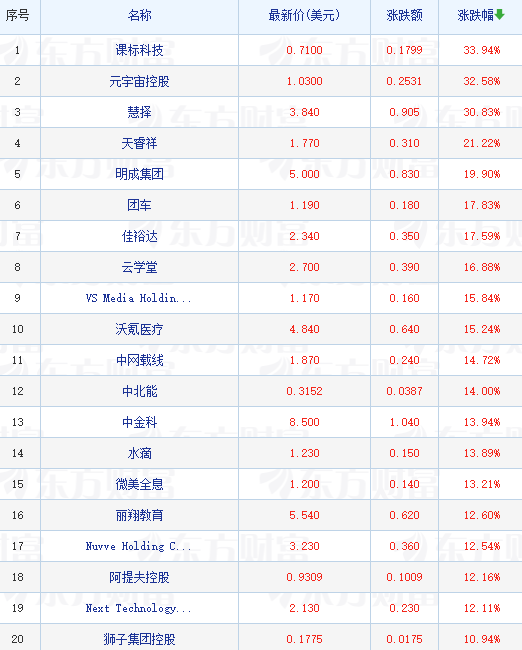 在其他中概股中,阿里巴巴股价上涨超过3%,新东方、理想汽车紧随其后,涨幅均超过2%;而房多多则领跌,跌幅超过7%。