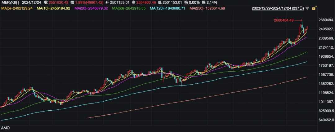 此外,阿根廷第三季度GDP环比增长3.9%,是自2023年底经济衰退以来的首次环比增长。同时,11月通胀率放缓至2.4%,为2020年7月以来最低水平。