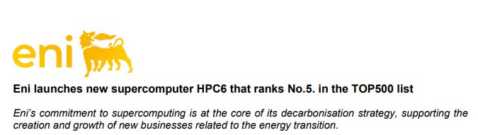 据最新媒体报道,意大利能源巨头埃尼公司(Eni)正式启动了其全球领先级别的超级计算系统“HPC6”,该系统位列全球超级计算机榜单TOP500中的第五名。