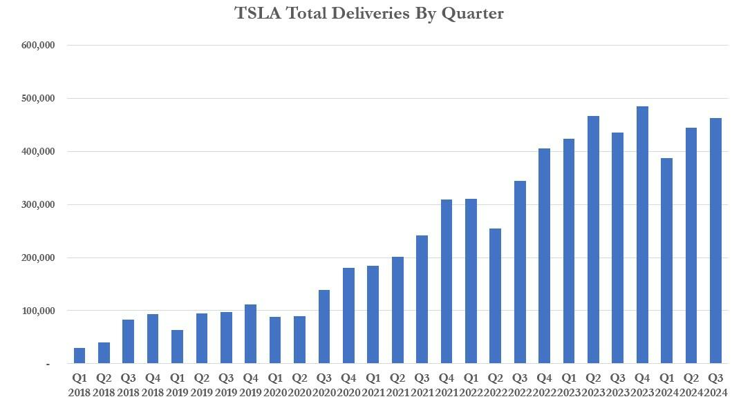 然而,并非所有分析师都如此乐观。德意志银行的分析师Edison Yu和Winnie Dong在报告中表达了对特斯拉全年交付量增长目标的担忧,他们认为特斯拉很难在第四季度达到51.5万辆的交付量。特斯拉此前曾预计,2024年全年交付量将“略微增长”,即超过2023年的181万辆。但根据今年前三季度的表现,特斯拉要想达到这一目标,第四季度至少需要交付514,925辆汽车,而去年四季度的交付量为484,507辆。