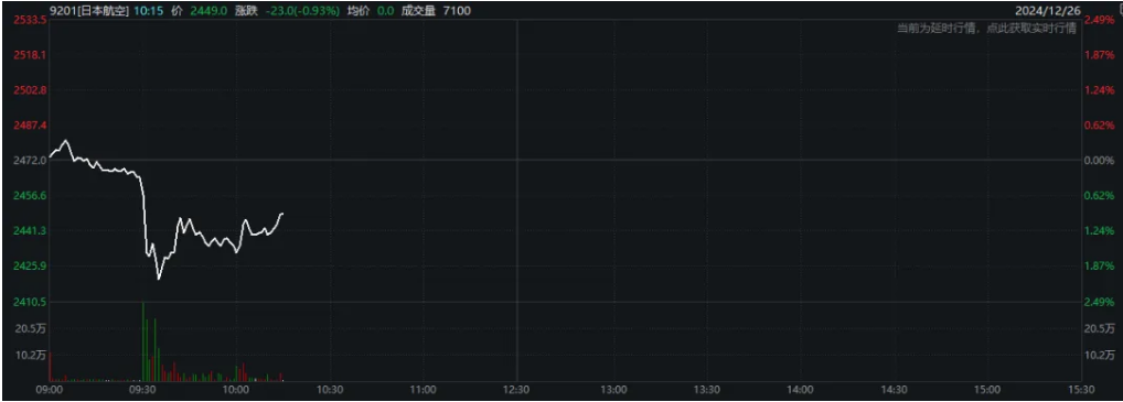受该突发事件影响,12月26日早晨,日本航空的股价在盘中突然跳水,一度下跌超过2%,尽管盘初时该股曾一度上涨。