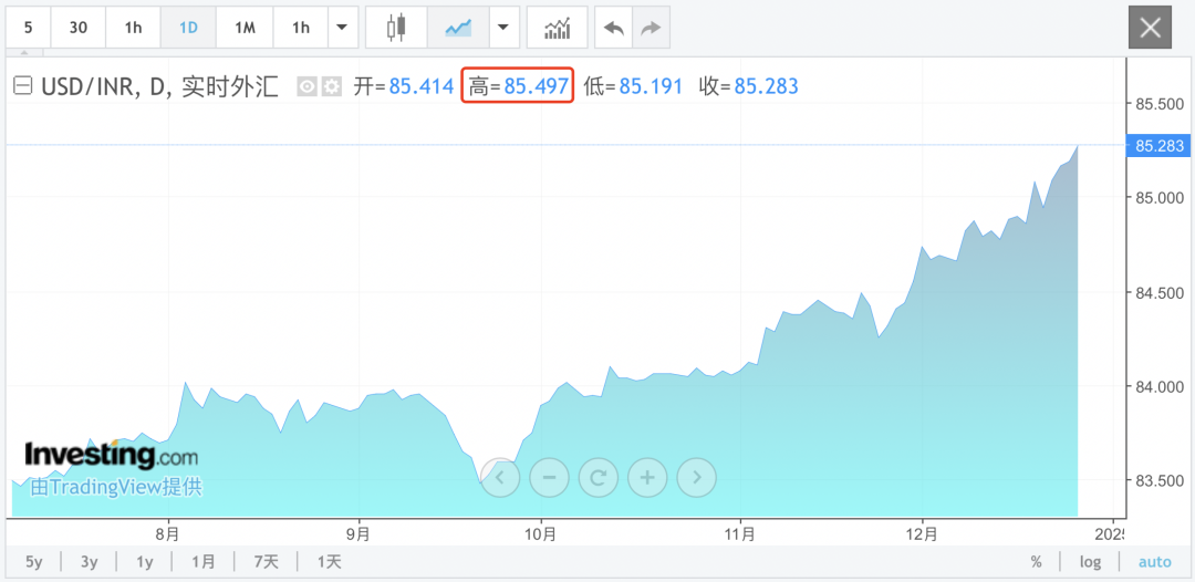 印度汇率近期遭遇重创。12月26日,印度卢比兑美元汇率再度暴跌,一度触及85.497的历史低点,连续第三个交易日刷新历史新低。自今年10月初以来,卢比兑美元汇率已累计下跌约1.81%,预计今年第四季度将创下自2022年第三季度以来的最差表现。
