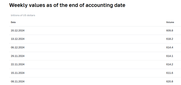 俄罗斯央行于12月26日正式发布的数据显示,截至12月20日当周,该国的国际储备总量下降至6098亿美元,这一数字标志着过去五周内国际储备的最大降幅,引发了市场对俄罗斯经济状况的进一步关注。