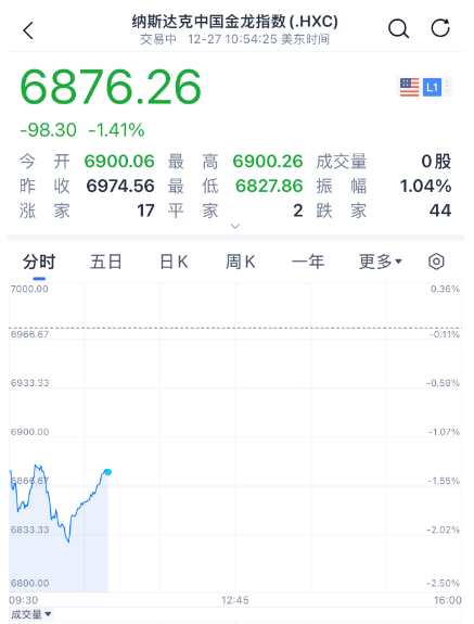 在中国资产方面,纳斯达克中国金龙指数也受到拖累,下跌约1.4%。