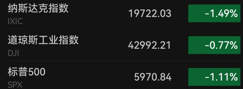 标普500指数的十一大板块全部收跌,非必要消费板块表现最差,跌幅达到1.90%。大型科技股普遍下跌,除了特斯拉外,英伟达、苹果、微软、奈飞、谷歌、亚马逊等科技巨头也纷纷下跌。