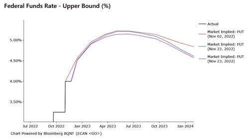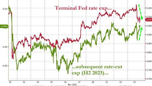 在利率市场方面,纪要发布前后,市场对美联储下月加息50个基点的预期并未发生显著变化。然而,投资者对美联储明年年中利率峰值的预期迅速回落,而对明年下半年降息的预期升温,这反映了市场对纪要中鸽派信息的直观反馈。