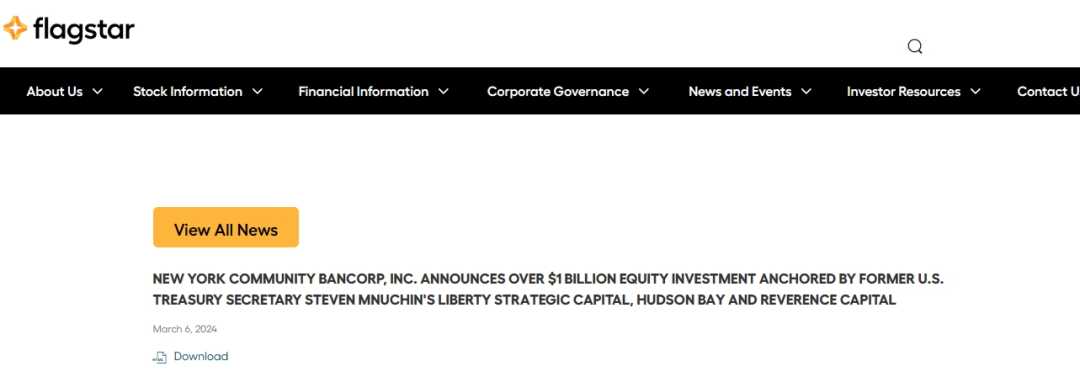 根据声明,参与投资的各方具体出资额为:Liberty公司投资4.5亿美元,Hudson Bay投资2.5亿美元,Reverence投资2亿美元。同时,纽约社区银行董事会将新增四名成员,包括努钦和Otting。