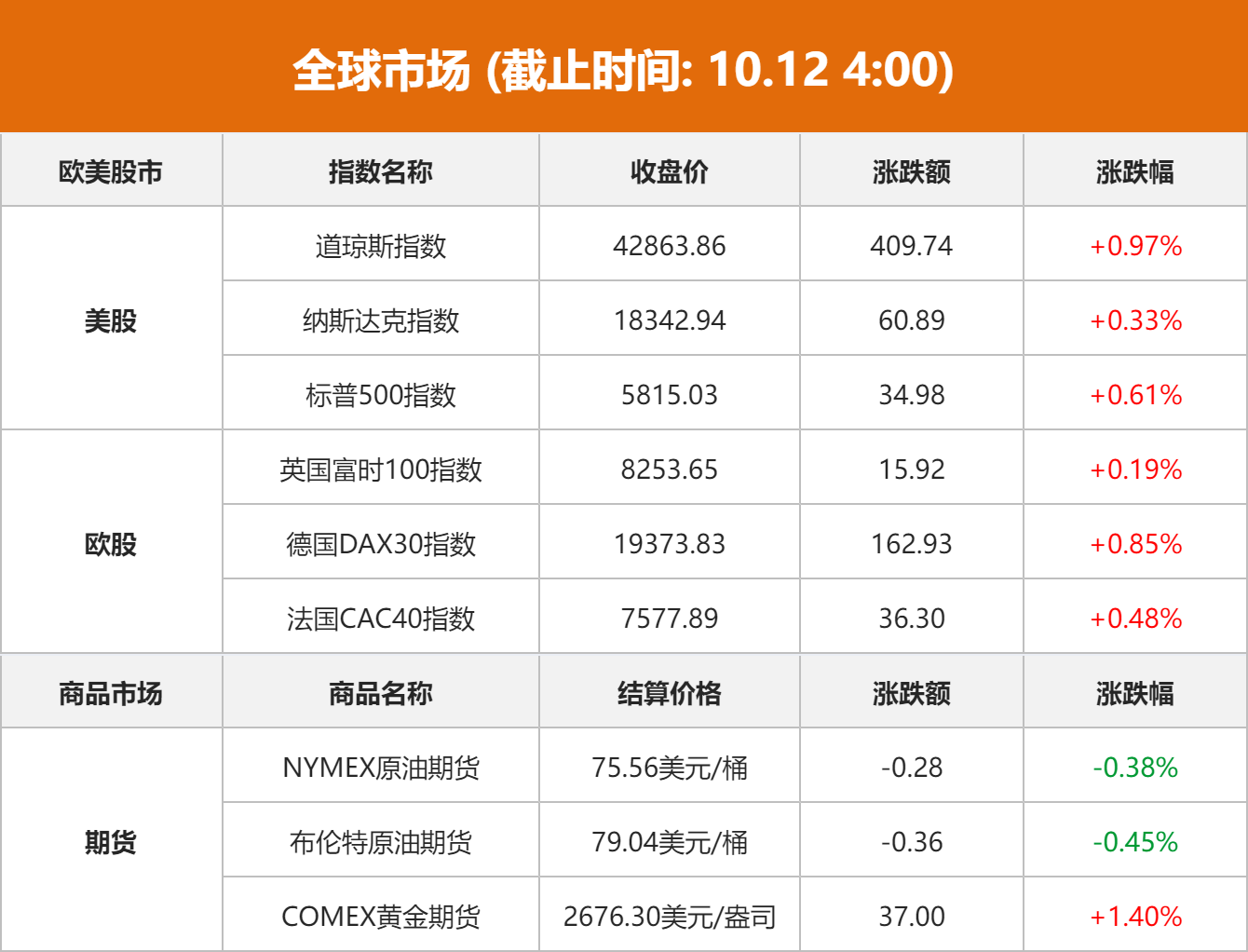 全球股市及商品市场综述