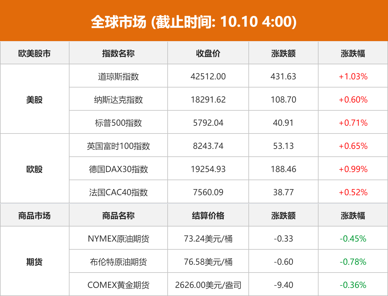 美股三大指数集体上涨,道指、标普创历史新高;欧洲三大股指全线上涨;国际油价、金价显著下跌,本文汇总了全球市场的重要资讯。