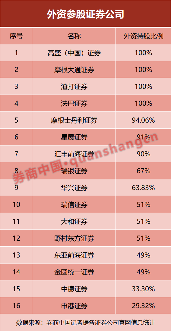 2024年3月23日,渣打证券作为首家新设外商独资券商在北京正式开业,随后法巴证券也于7月16日注册成立。加上此前的高盛(中国)证券和摩根大通证券,外资独资券商的数量增至4家。与此同时,还有摩根士丹利证券、星展证券和汇丰前海证券等外资控股合资券商,在中国市场积极展业。
