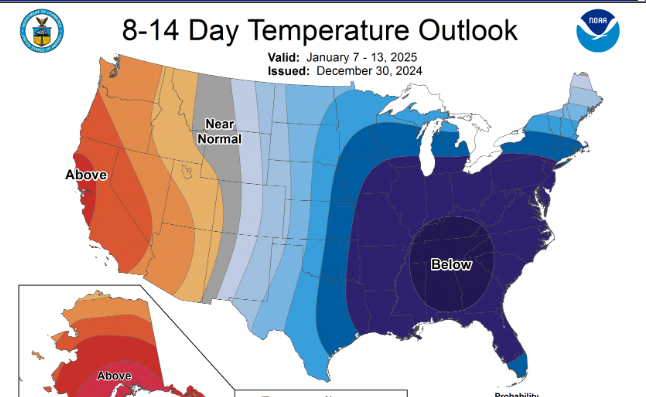 分析师指出,美国气价大涨主要因强寒潮预期刺激供暖用气需求看涨。据美国气象局预计,本周来自北极的强寒流将逐渐蔓延至美国大部分地区,导致气温偏低。极地涡旋的推进也给美国带来创纪录的寒流,进一步推高了天然气价格。