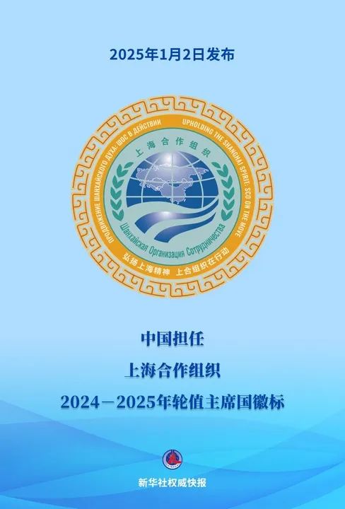 2025年1月2日,中国正式发布担任上海合作组织2024-2025年轮值主席国的专属徽标,象征着中国在推动组织发展中的新角色与责任,寓意深远,将进一步推动区域合作。